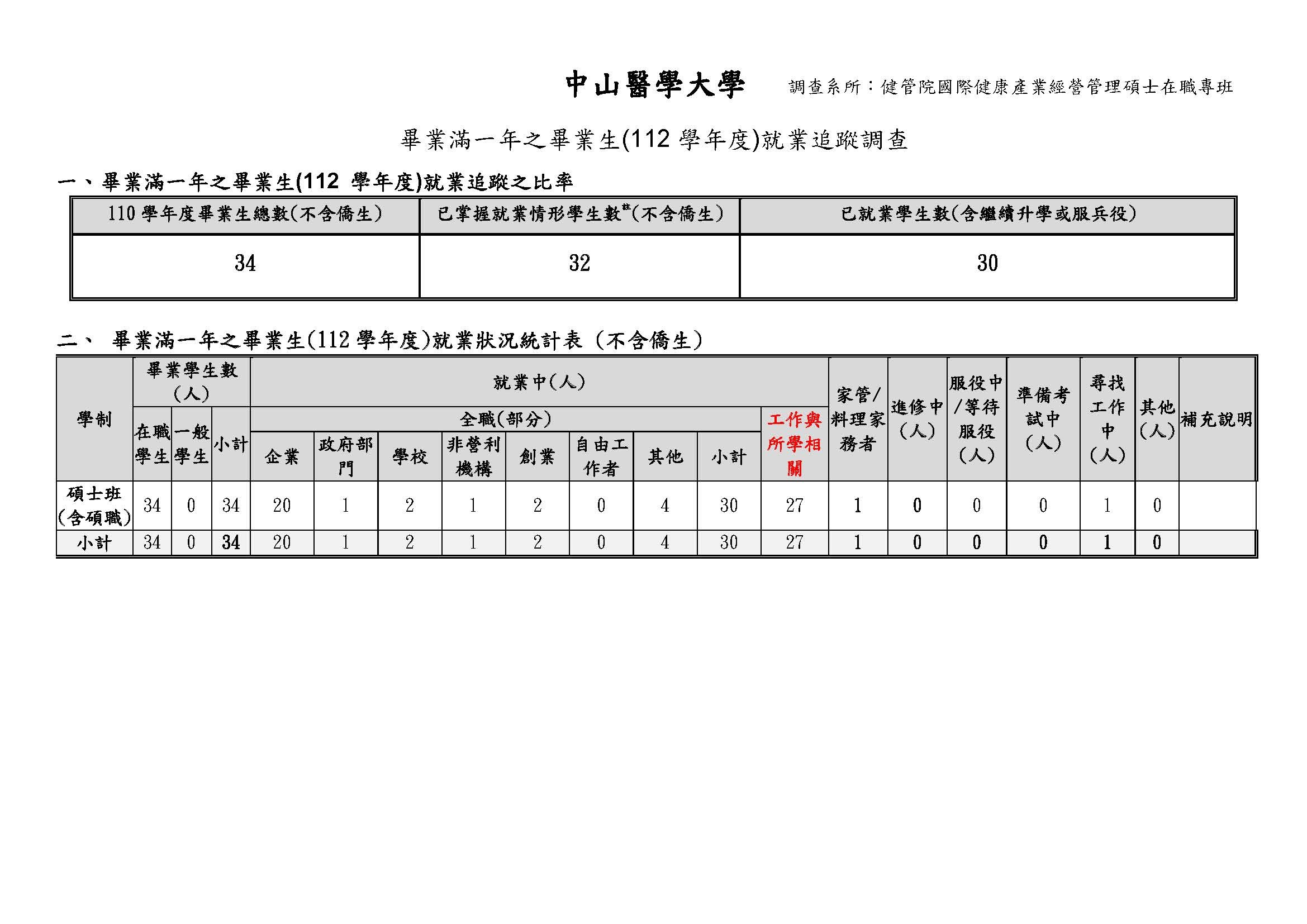 112學年度畢業滿1年畢業生流向調查
